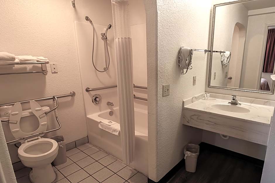 Key amenities include free Wifi, a free business center, and a free airport shuttle, along with air conditioning, a 24-hour front desk, non-smoking rooms, free toiletries, and a bathtub. Pet-friendly accommodations are available with extra charges.